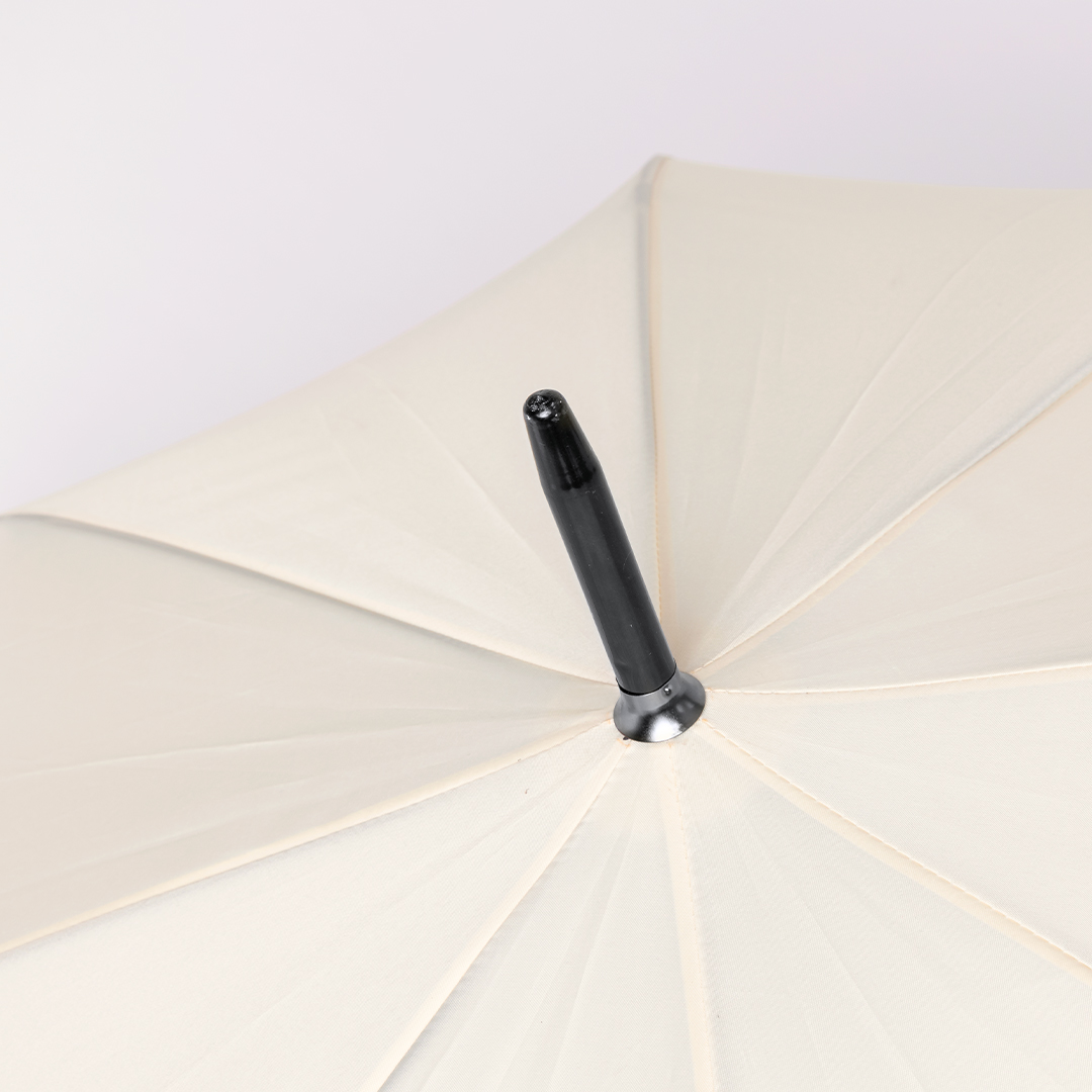 8-paneeliline vihmavari, läbimõõduga 120 cm. Valmistatud vastupidavast 190T pongee-materjalist loodusliku viimistlusega. Automaatse avamismehhanismi ja tormikindla süsteemiga. Mustade fiiberribide, puidust käepideme ja takjapaelaga kinnitusribaga