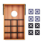BAGGY kahepoolne mängukomplekt sisaldab Cornhole’i liivakottide viskamise mängu ja klassikalist tic-tac-toe mängu, olles lõbus, praktiline ja keskkonnasõbralik meelelahutus