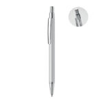 DANA push-mehhanismiga pastapliiats sinise tindiga taaskasutatud alumiiniumist korpuses on stiilne, keskkonnasõbralik ja premium-tundega kontoritarvik