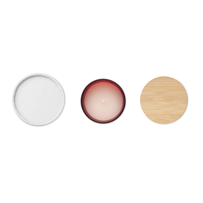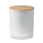 Lõhnastatud taimse vahaga 280 g küünal mattklaasist purgis bambusest kaanega, ideaalne firmalogoga personaliseeritav kingitus