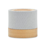 BOOL on 5W juhtmevaba kõlar RPET korpuses bambusest detailiga, ideaalne firmalogoga personaliseerimiseks ja reklaamkingituseks