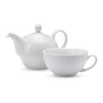 TEA TIME on teekomplekt, mis sisaldab 400 ml teekannu ja valget keraamilist tassi, pakendatud kinkekarpi