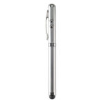 TRIOLUX metallist laserpointer valge LED-valgustuse, punase laserpointeri ja pehme puutetundliku otsikuga, komplektis nupppatareid ja metallkarp, on praktiline ja stiilne lahendus esitlusteks