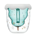 Borosilikaatklaasist topelt seintega tass, millel on silikoonist kaas. Tassil on jõululik vormitud sisu. Maht: 250ml