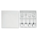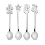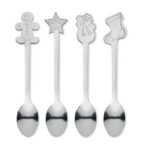 Komplekt 4 roostevabast terasest teelusikast jõulumustritega. Esitatud kinkekarbis