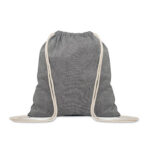 Ümbertöödeldud puuvillast (80% taaskasutatud puuvill, 20% tavaline puuvill) pingutusnööriga kott eriti lühikeste sangadega. 140 gr/m²