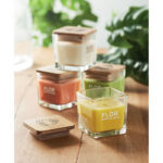 Aromaatne taimepõhine vahaküünal bambusest kaanega, ruudukujulises klaasist hoidikus. 50 gr. Põlemisaeg: 8 tundi. Valge(06) vanilje, kollane(08) sidrun, oranž(10) apelsin, roheline(48) õun