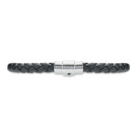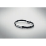 Punutud kunstnahast manseti käevõru poleeritud terasest detailidega. Push-lock lukk. Randme ümbermõõt: 18 cm