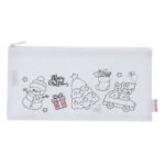 Valgest RPET-materjalist pinal lõbusate jõulujoonistustega, mida saab ise värvida. Komplektis 5 eri värvi pliiatsit. Tõmblukk metallist tõmburiga