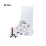Valgest RPET-materjalist jõulusokk lõbusate pühadejoonistustega, mida saab värvida. Komplektis 5 värvipliiatsit ja riputusriba