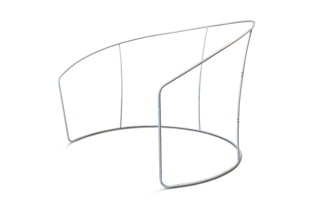 Huvitava kujuga 32 mm alumiiniumtorudest reklaamsein. Polüestrikangas lukuga, nummerdatud elemendid, kiire kokku panna ja mugav transpordikott