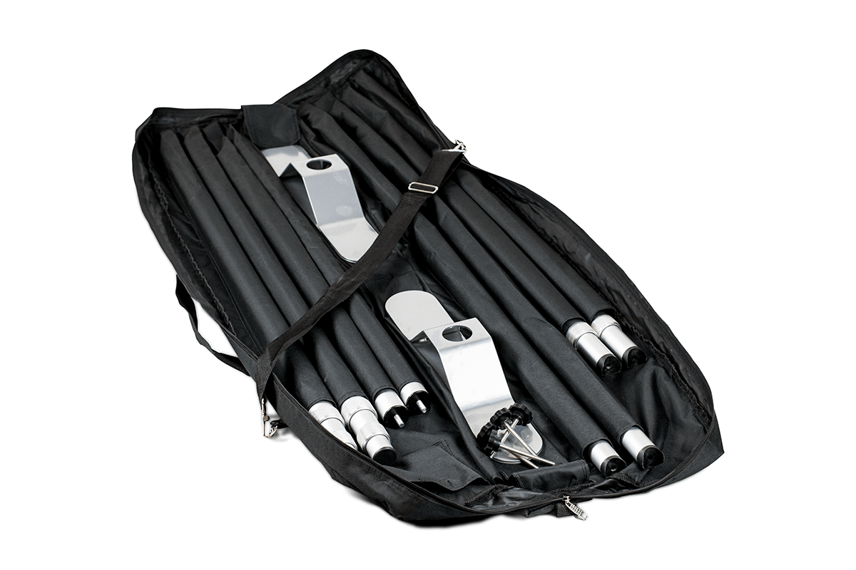 Tugevdatud teleskoopne reklaamsein, mille kõrgust ja laiust saab reguleerida. Graafika kinnitatakse ülemise ja alumise toru abil